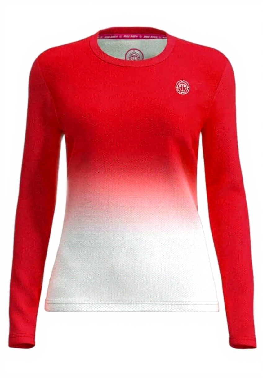 Dieses Longsleeve von BIDI BADU überzeugt mit einem modernen Gradient-Design in Rot und Weiß, das für einen dynamischen Look sorgt. Hergestellt aus 92% recyceltem Polyester und 8% Elasthan, bietet es hohen Tragekomfort, Atmungsaktivität und Bewegungsfreiheit, ideal für aktive Kinder.