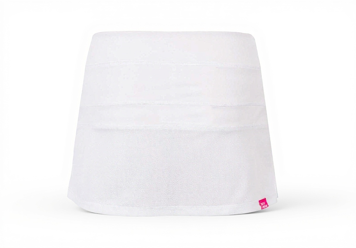 Der Rock ist in den Größen XXS, XS, S, M und XL erhältlich, alle in der Farbe Weiß. Das Material besteht aus 88% Polyester und 12% Elasthan, was für eine leichte Pflege und schnelle Trocknung sorgt. Der elastische Bund und die integrierte Short gewährleisten einen komfortablen Sitz und Bewegungsfreiheit, ideal für aktive Einsätze.