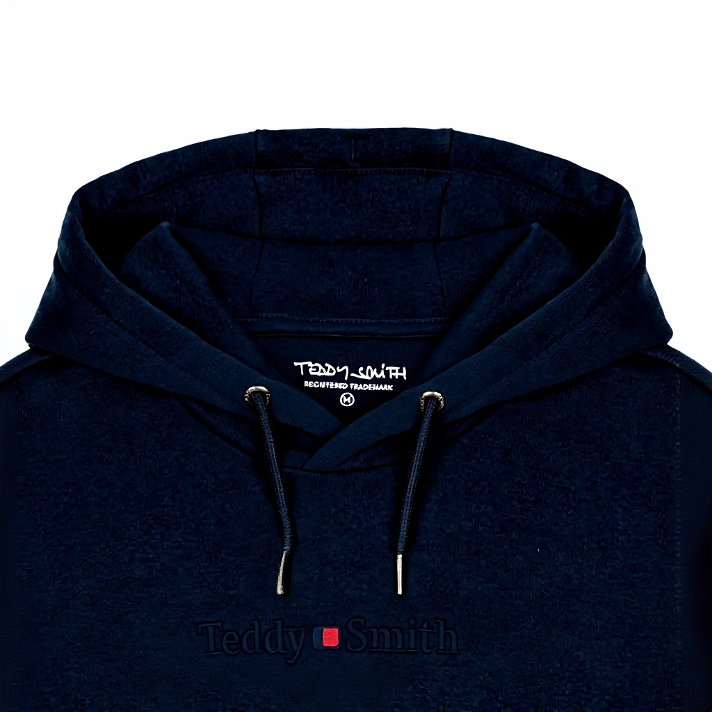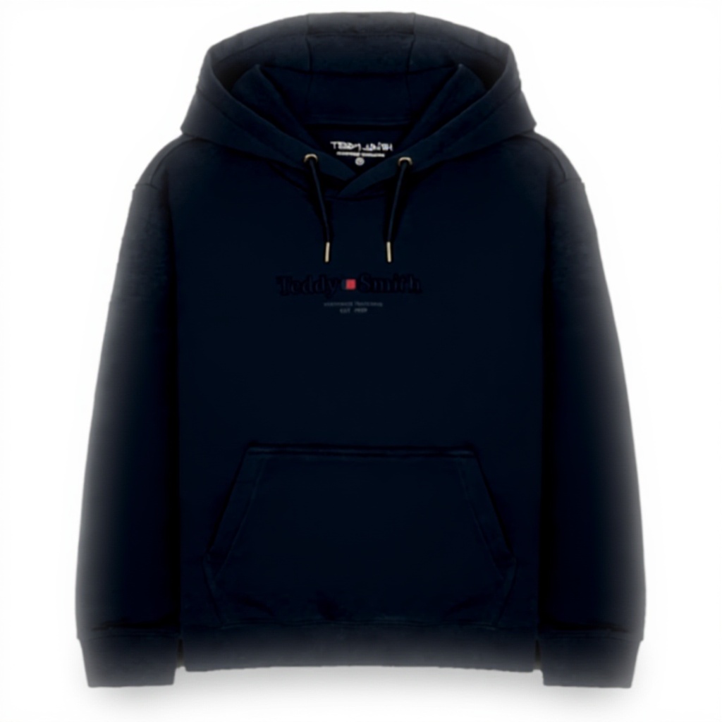 Der Teddy Smith S-Jim Hoody zeichnet sich durch sein weiches, strapazierfähiges Material und eine funktionale Kapuze aus. Er bietet einen bequemen Schnitt und ist in der zeitlosen Farbe Total Navy erhältlich, was ihn zu einem vielseitigen Kleidungsstück für den täglichen Gebrauch macht.